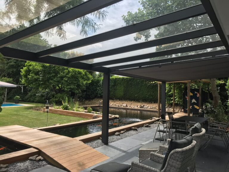 Met een Pallazzo aluminium terrasoverkapping kun jij het hele jaar door maximaal genieten van het buitenleven. En als je een Pallazzo glazen schuifwand toevoegt, creëer je een all-season buitenruimte aan je huis. Het maakt niet uit of het warm, koud, nat of droog is, jij kunt de charme van elk seizoen ervaren, gewoon in jouw eigen tuin.